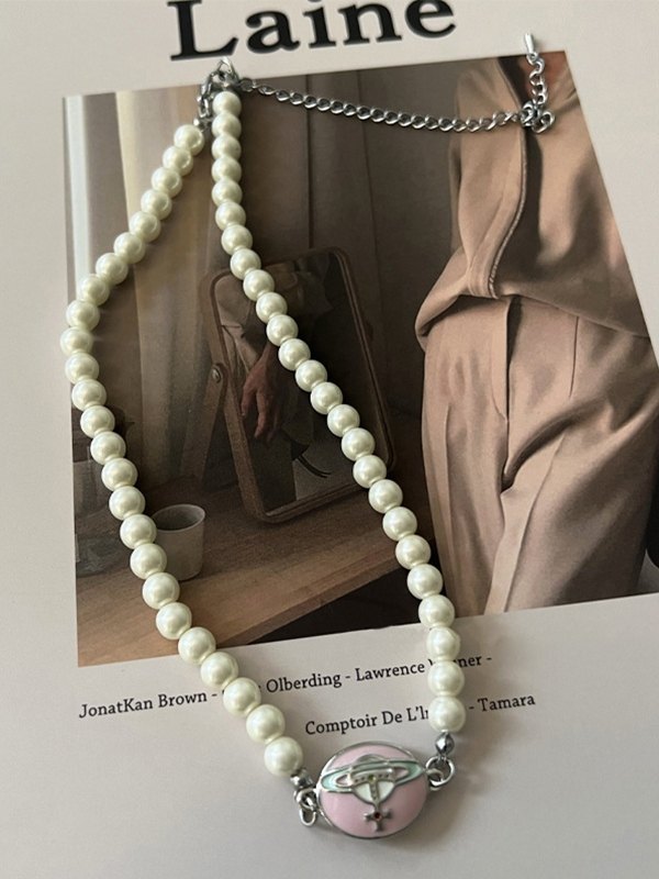 Collar de gargantilla de perlas de imitación con colgante de cruz de diamantes de imitación