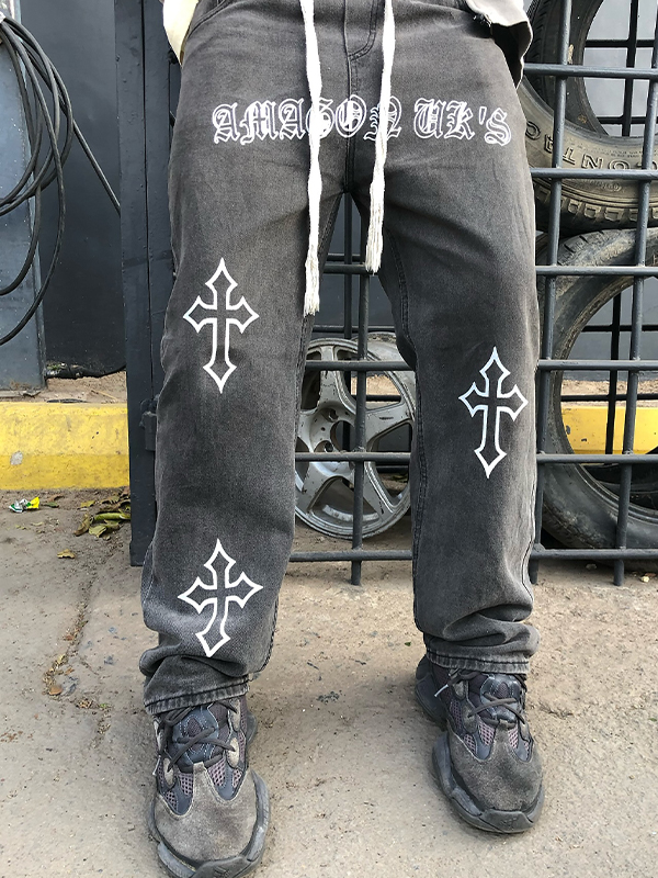 Vaqueros holgados con estampado de letras Hip Pop para hombre