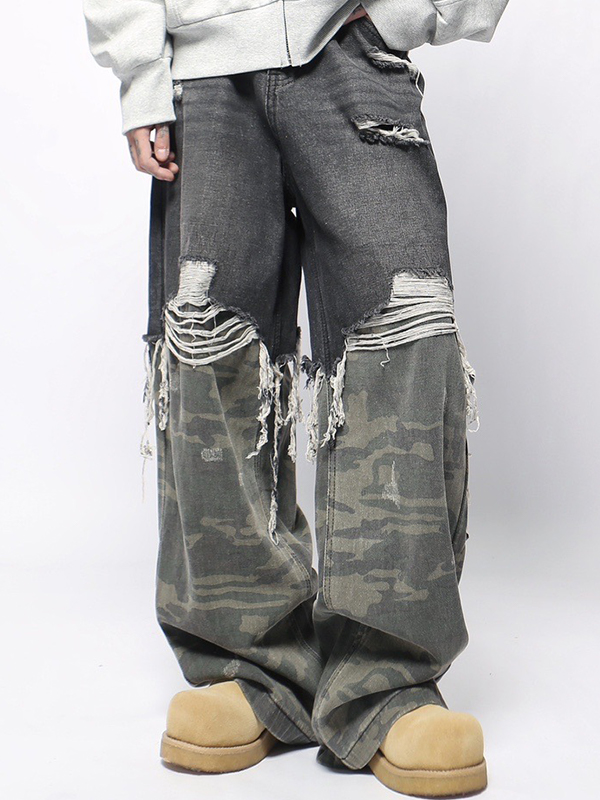 Jeans sueltos de mezclilla vintage desgastados para hombre