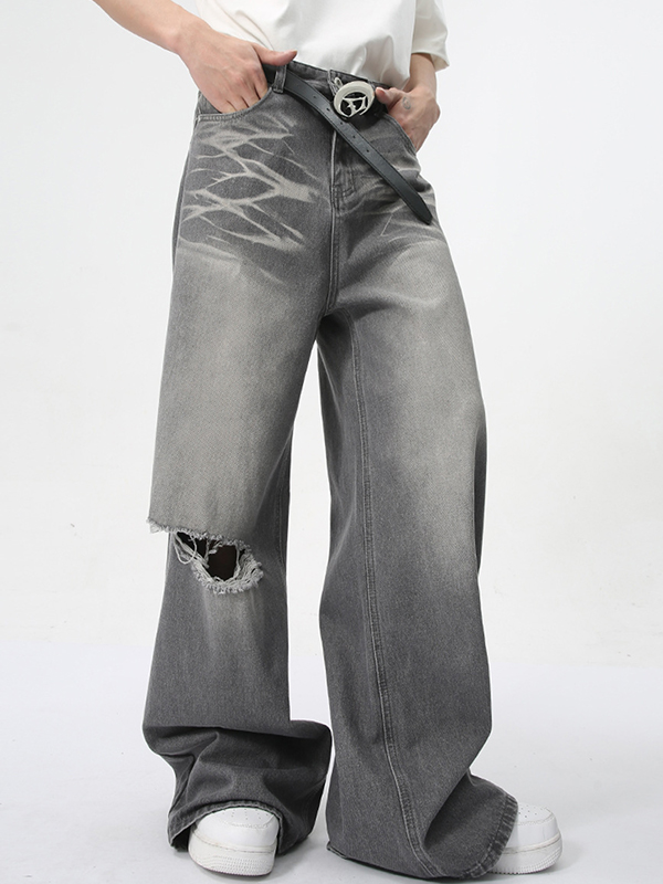 Vaqueros holgados con bordes sin rematar de estilo vintage para hombre
