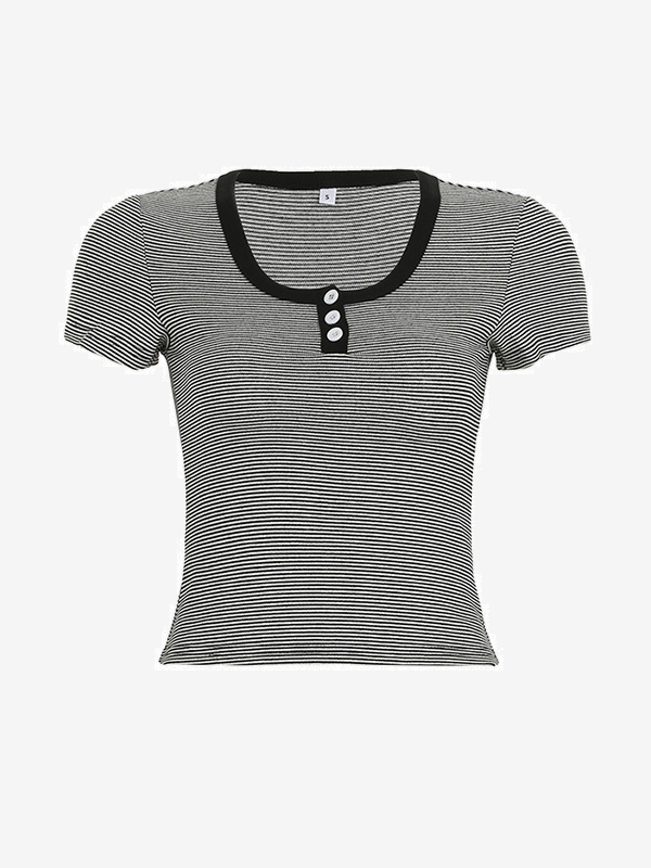 Camisa vintage de rayas con tres botones y mangas cortas
