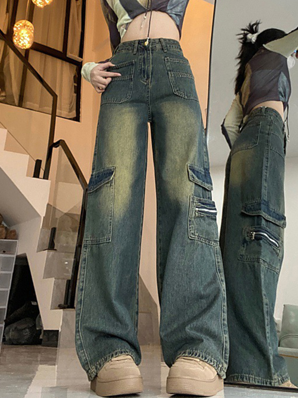 Jeans cargo con múltiples bolsillos y diseño de ropa de trabajo