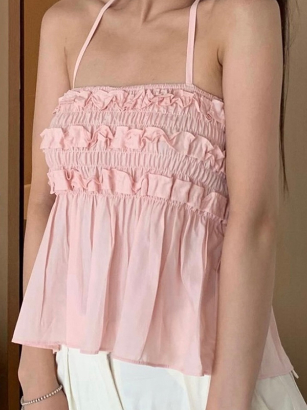 Chaleco halter con dobladillo de pendiente de madera y volantes