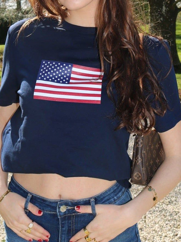 Sudadera retro de manga larga de gran tamaño con bandera estadounidense