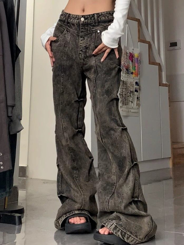 Vaqueros acampanados ligeramente acampanados con pliegues lavados estilo Wasteland