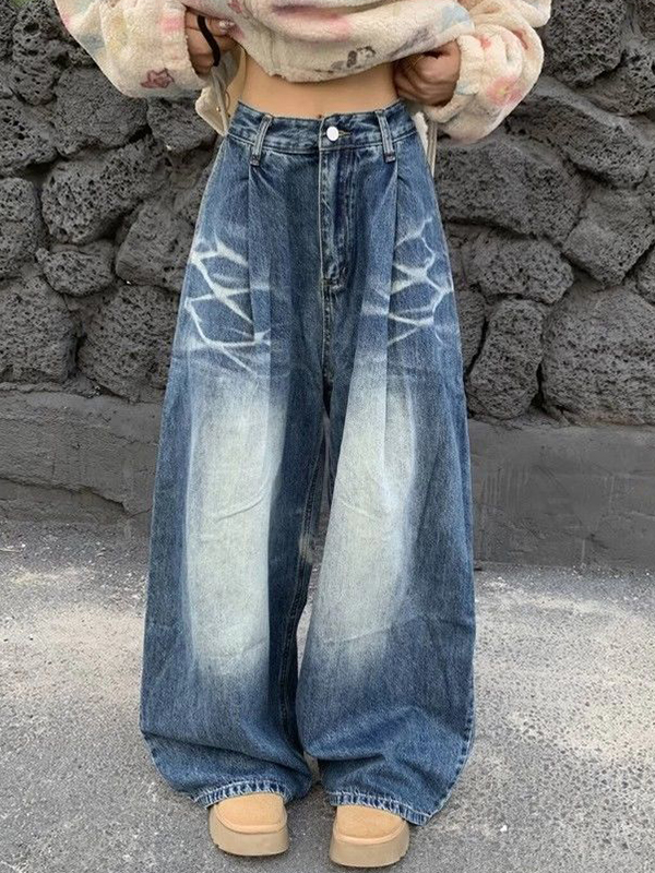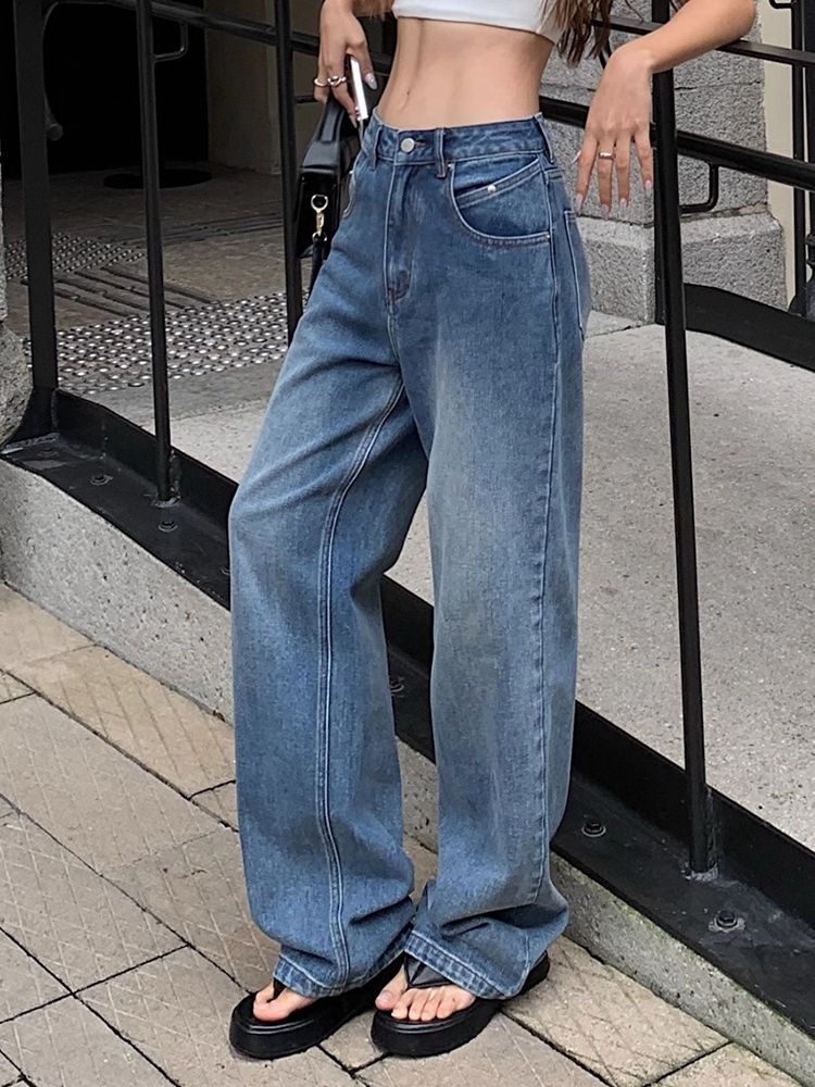 Vaqueros holgados con pierna recta y cintura alta con barba fluida