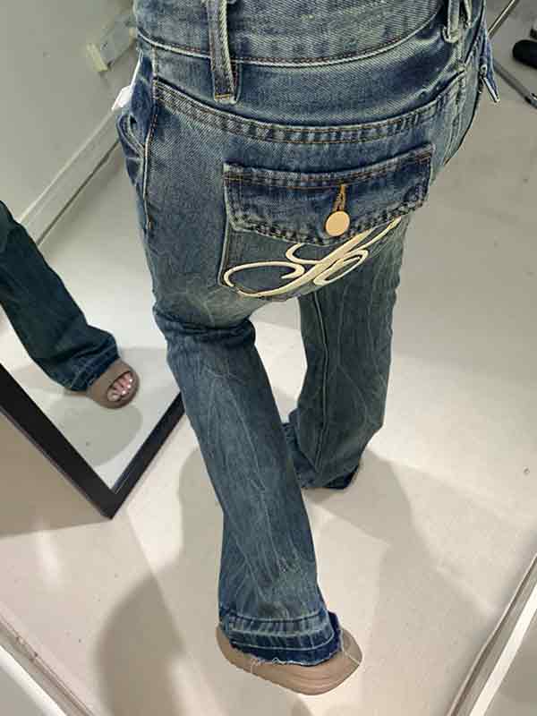 Vaqueros acampanados hasta el suelo, de cintura alta y ligeramente levantados