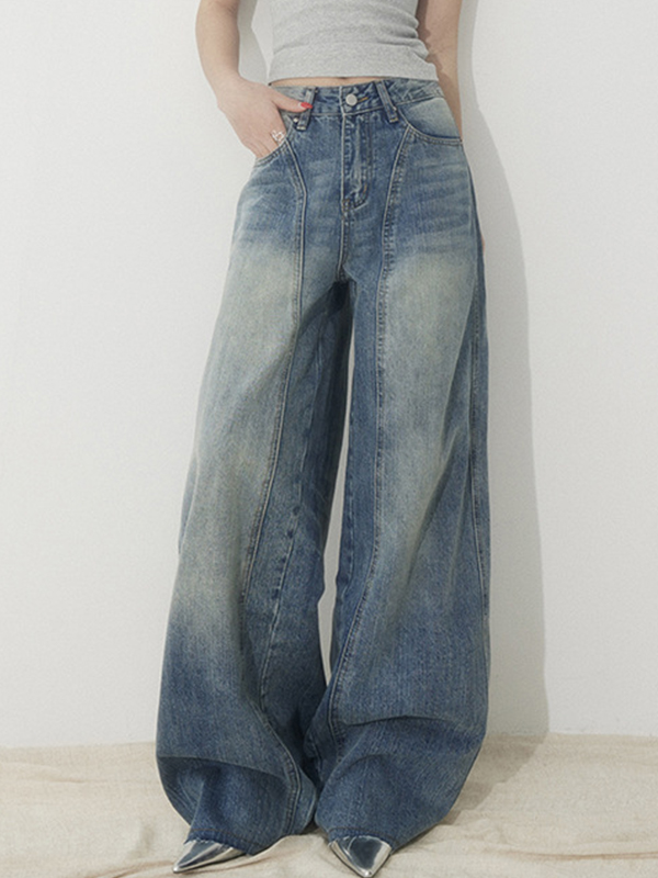 Vaqueros holgados con perneras anchas y lavados con borde crudo