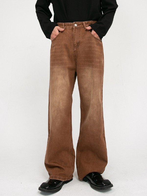 Jeans sueltos de hombre de mezclilla marrón desteñido