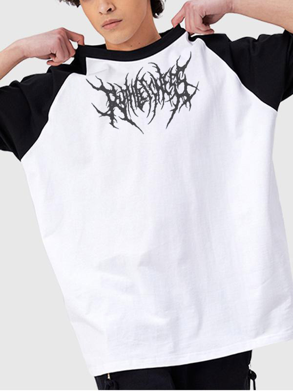 Camiseta de manga corta con estampado de letras raglán para hombre