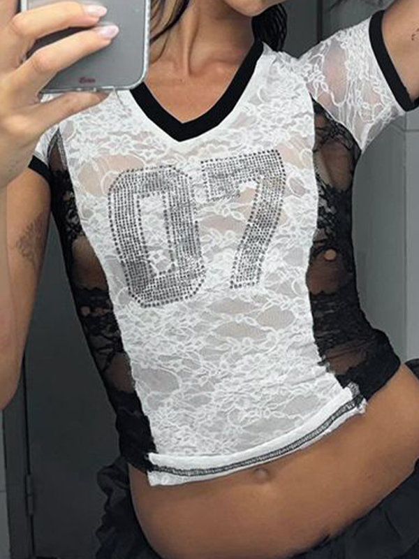 Camiseta de manga corta con capucha y dobladillo desgastado con estampado desgastado para hombre