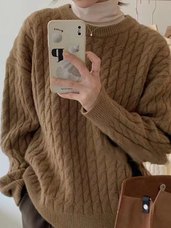 Suéteres oversize con hombros descubiertos y colores sólidos