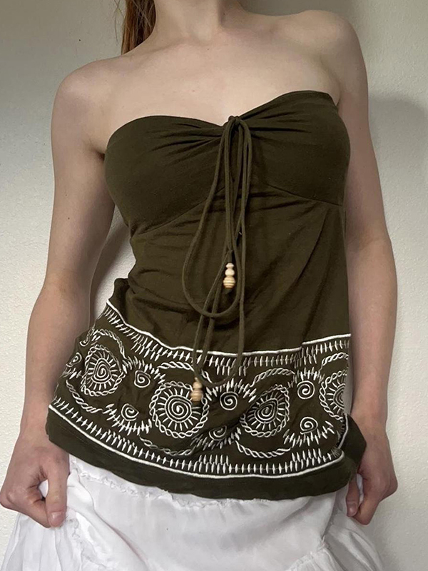 Conjunto de dos piezas de mezclilla sin mangas con cordones