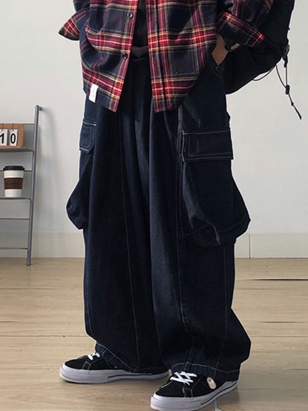 Vaqueros cargo holgados con bolsillo grande para hombre