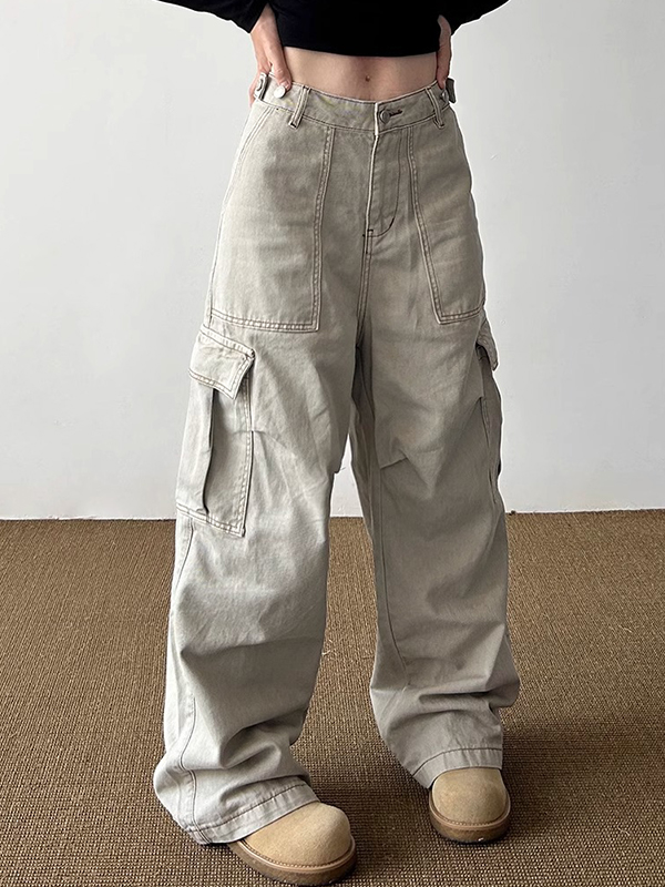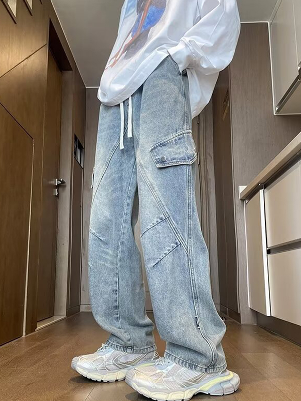 Jeans cargo con múltiples bolsillos y diseño de ropa de trabajo
