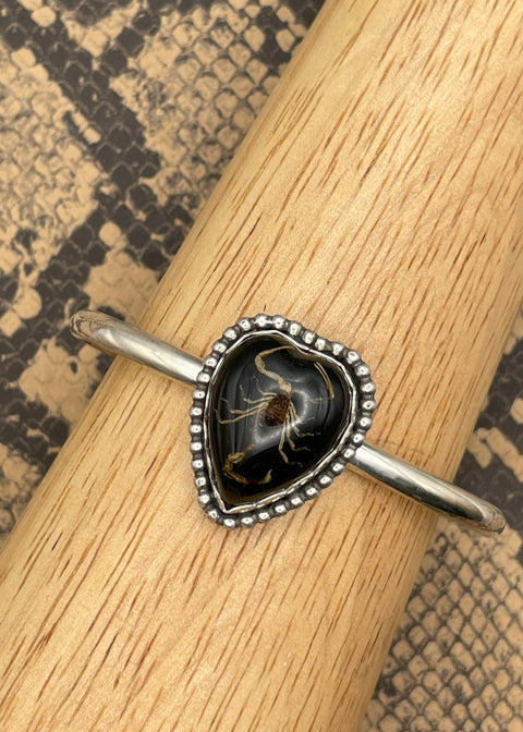 Bracelet manchette en argent sterling avec scorpion et cœur