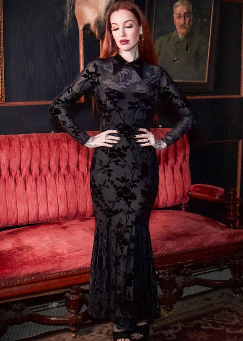 Robe gothique trapèze en brocart noir