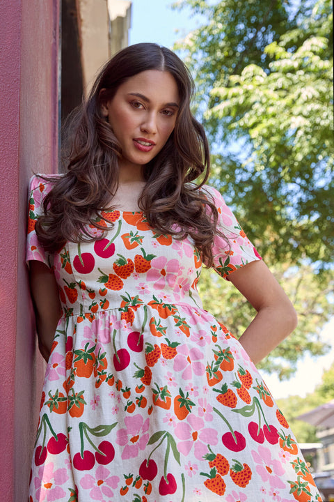 Robe courte à fleurs de baies et crème