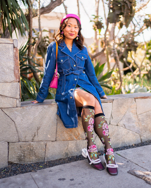 Notre chaussette transparente noire « English Rose », un best-seller, est désormais disponible en version mi-mollet ! Affirmez votre style printanier avec ces roses roses qui montent jusqu’au genou, contrastant avec le tissu noir transparent pour une allure sophistiquée et chic parisienne. Apportez une touche d’audace et de fantaisie à votre garde-robe printanière avec cet imprimé que vous adorez. Taille unique. Convient aux pointures femme américaines 5,5 à 9,5. 200 aiguilles. Un style original et élégant, sans motifs enfantins. Qualité supérieure : confection durable et extensible pour un confort optimal. Unique : l’accessoire parfait pour personnaliser vos tenues.