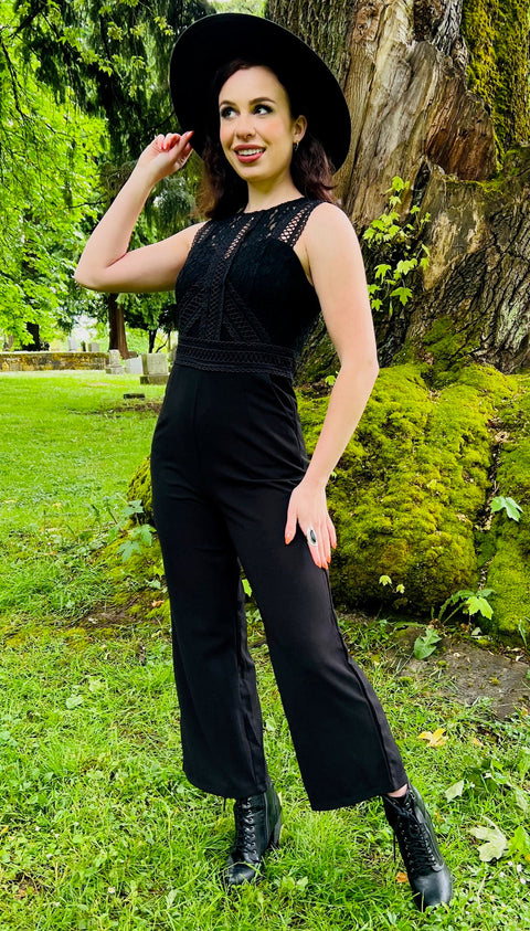 Puissance, assurance et une pointe de danger : la combinaison Branwen est la réponse sombre et chic à vos rêves de gothique professionnelle. Version ajustée de notre robe Agatha adorée, cette combinaison présente une taille cintrée, une silhouette à jambes larges et – oui – des poches, car les sorcières ne plaisantent pas. Le corsage orné de dentelle ajoute une touche de rébellion romantique, tandis que le dos échancré offre juste ce qu’il faut d’intrigue pour les réunions ou les virées sur un balai. À la fois structurée et envoûtante.