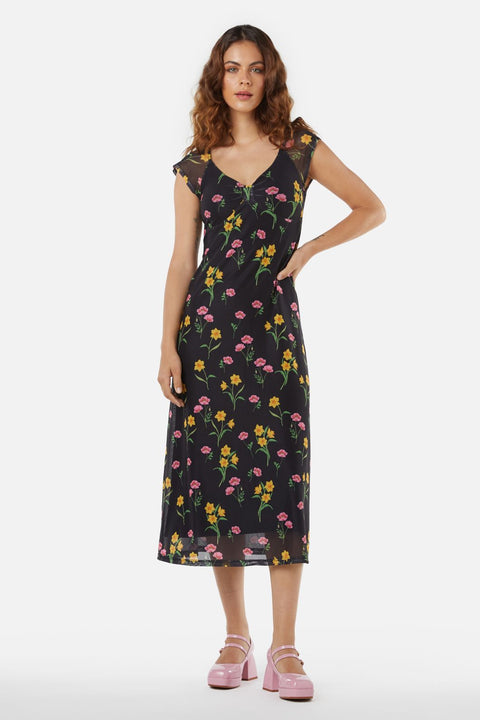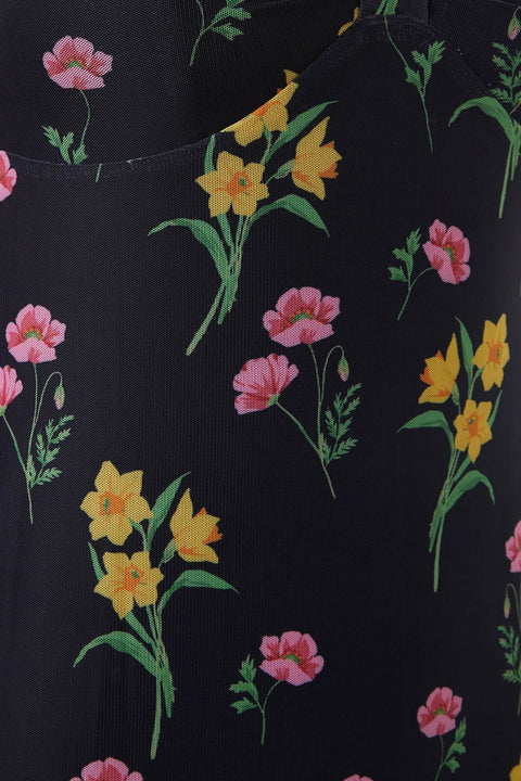 Replongez dans les années 90 avec la robe en maille fleurie de Princess Highway, un véritable hymne à la nostalgie. Cette robe est une ode poétique à cette décennie, avec un corsage empire qui souligne gracieusement la taille avant de s’évaser en une jupe semi-ajustée. De courtes manches papillon flottent sur vos épaules, ajoutant une touche de fantaisie et de liberté. Le décolleté en V offre un écrin à la fois pudeur et séduction, invitant à dévoiler subtilement ce qui se cache en dessous. Confectionnée dans un mélange de polyester et d’élasthanne, cette robe allie confort et durabilité, pour un look rétro qui traversera les années. En noir, ce fond polyvalent met en valeur le motif floral, idéal pour un café entre amis, une balade décontractée en ville ou ces soirées où l’on a envie d’écouter de la poésie ou de la musique en direct dans un coin intime de la ville.