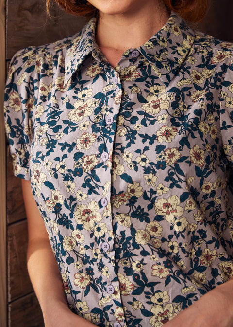 Douce comme le miel et tout aussi charmante, la chemise à manches courtes Bee Buzz de notre marque ModCloth apporte une touche de fantaisie vintage à votre garde-robe quotidienne. Ce chemisier léger en tissu tissé présente un délicat motif floral sur un fond lavande doux, avec des manches courtes bouffantes et un col classique qui lui confèrent une silhouette résolument rétro. Qu’elle soit rentrée dans un pantalon taille haute ou associée à une jupe en tulle pour une allure féérique, cette pièce est parfaite pour celles qui aiment leur style avec une touche de nostalgie.