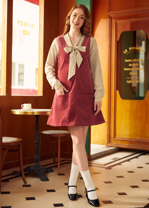 Robe en velours côtelé à col V Retro Radiance