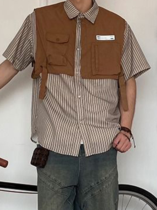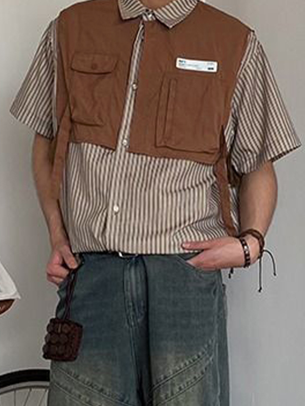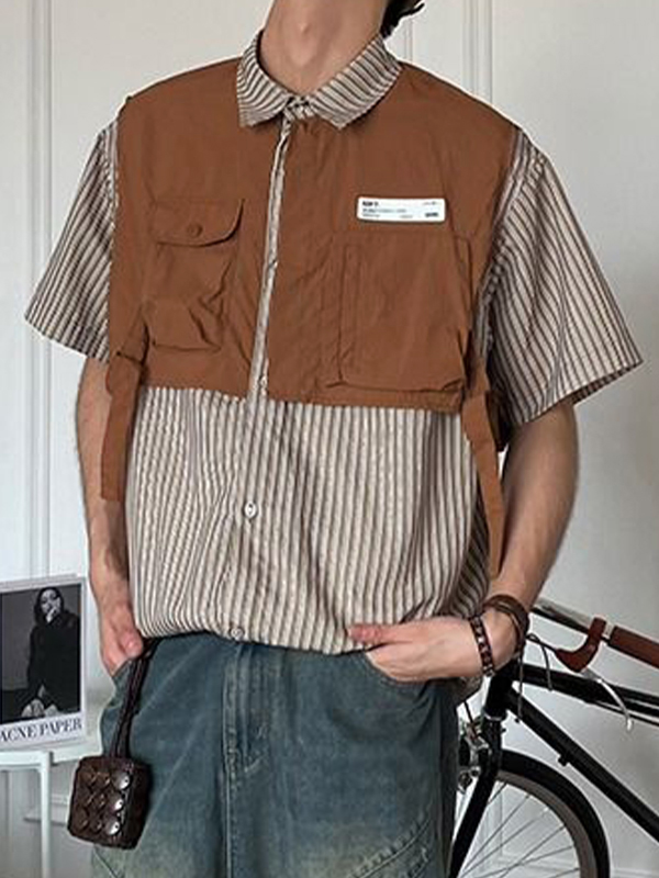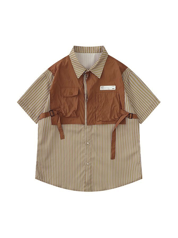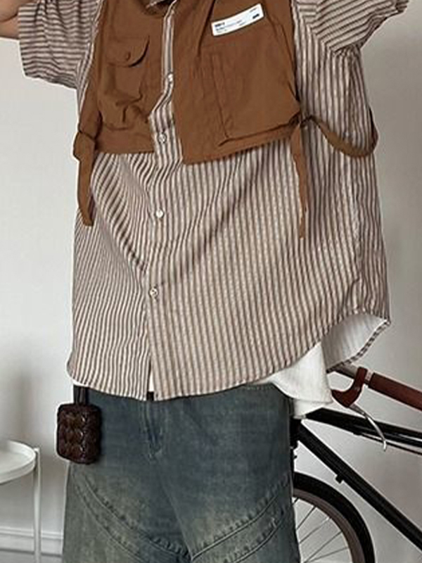 Sé el primero en valorar “Blusa de manga corta de dos piezas falsa con chaleco de empalme a rayas para hombre”