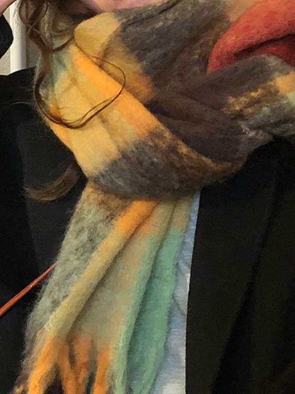 Sé el primero en valorar “Bufanda extragrande con flecos de cuadros arcoíris”