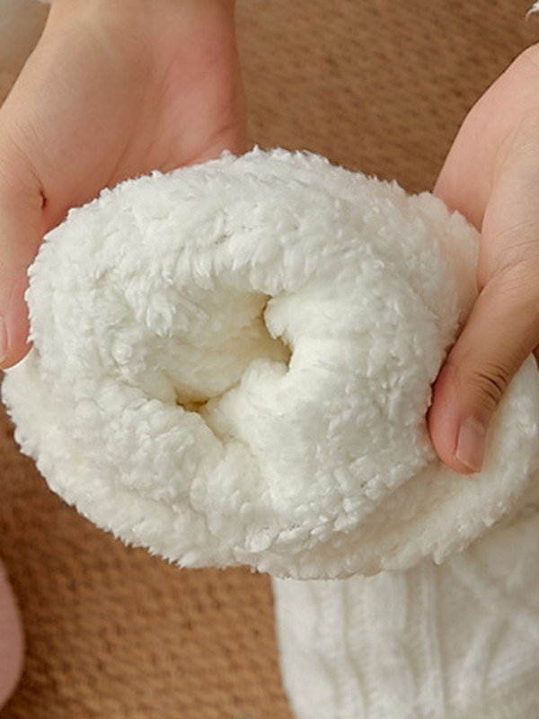 Detalles: Estos suaves y cómodos calcetines tipo botín hechos de tela de punto trenzado, con cálido forro polar y diseño inferior antideslizante.