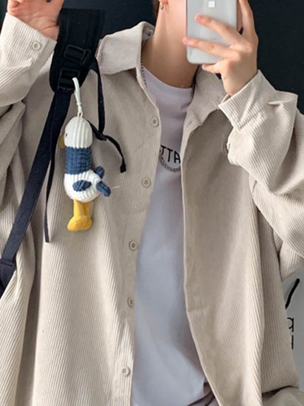 Descripción: Esta camisa básica es perfecta para el guardarropa de clima fresco. Confeccionado con tela de pana, se corta a una silueta relajada, presenta hombros caídos y un diseño de cierre con botones en la parte delantera. Ponte abrigado con estas cómodas camisetas.
