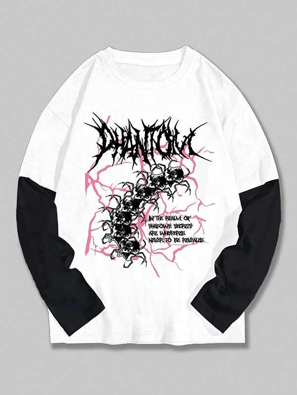 Camiseta extragrande de manga larga con estampado retro para hombre