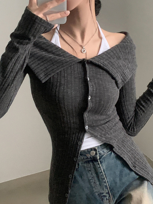 Sé el primero en valorar “Cárdigan adelgazante de manga larga con un hombro al descubierto”