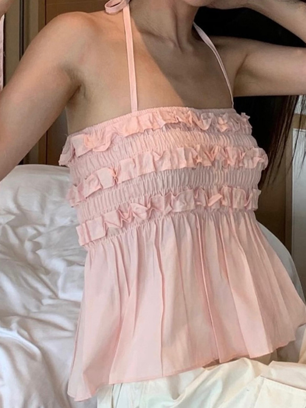 Chaleco halter con dobladillo de pendiente de madera y volantes