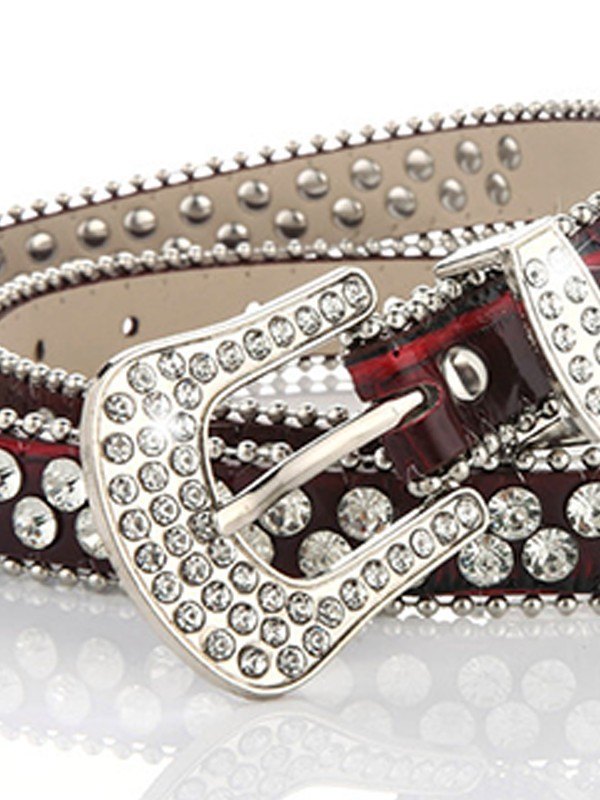 Cinturón con hebilla de piel sintética con diamantes de imitación dobles