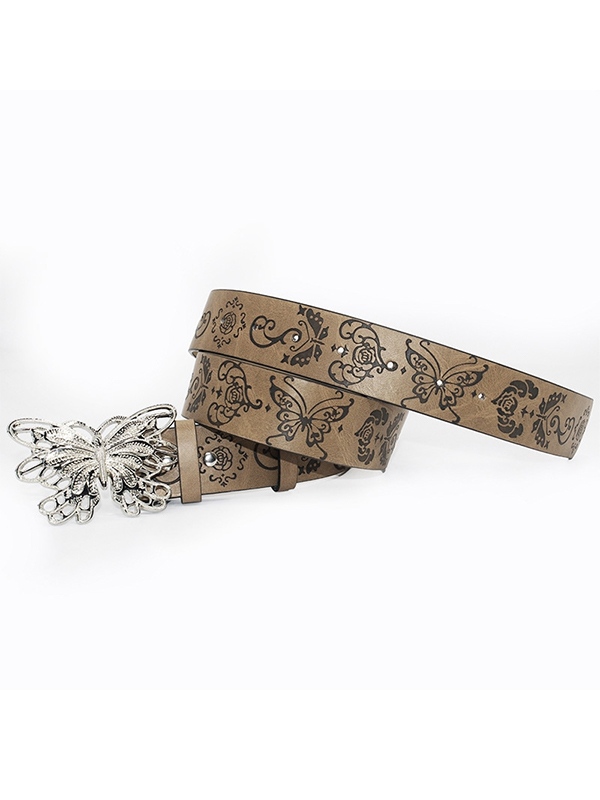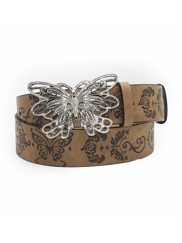 Cinturón vintage con hebilla de mariposa de metal en relieve