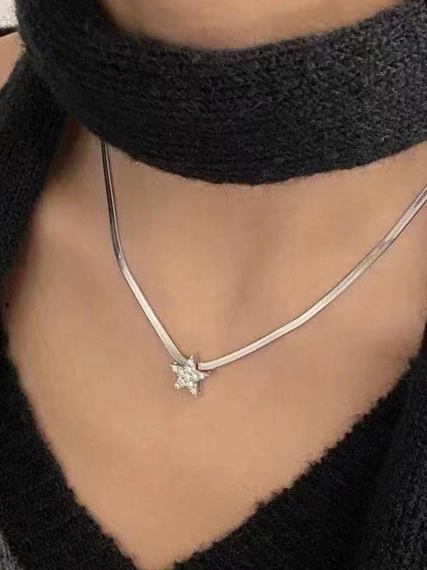 Collar de cadena de serpiente con dije de estrella de diamantes de imitación