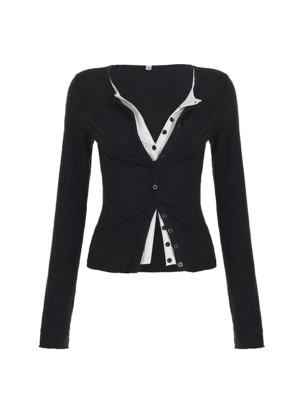 Composición del tejido: fibra de poliéster. Corte: entallado. Escote: cuello camisero. Largo de manga: manga larga.
