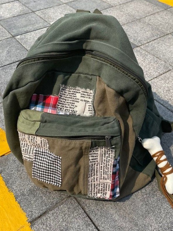 Mochila con decoración de parches diferentes
