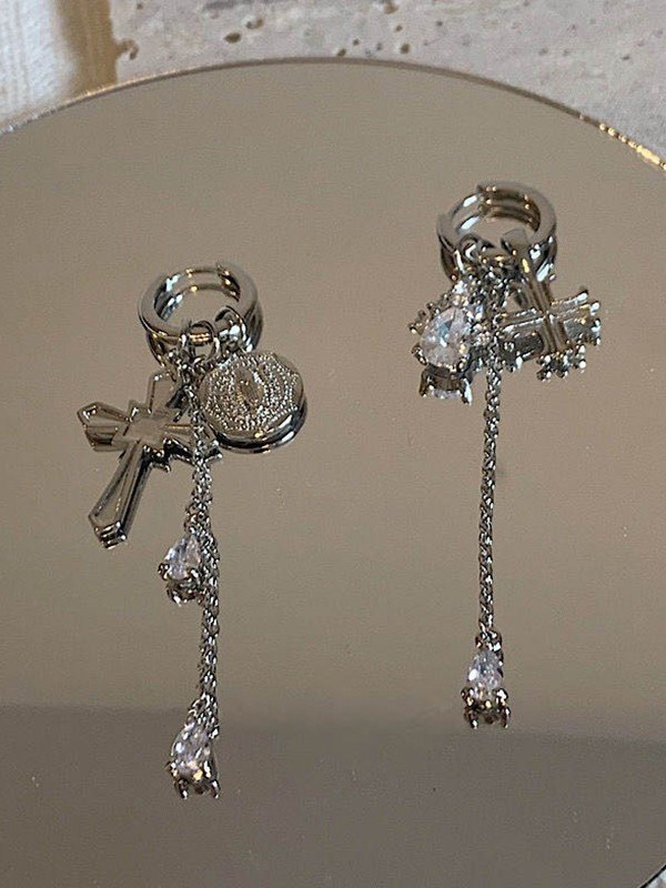 Sé el primero en valorar “Pendientes de aro con colgante de cruz y borla de circón”