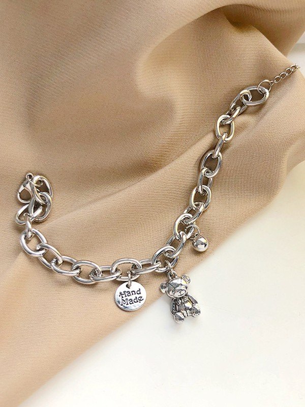 Pulsera de amistad con dije de oso de dibujos animados de cadena de eslabones