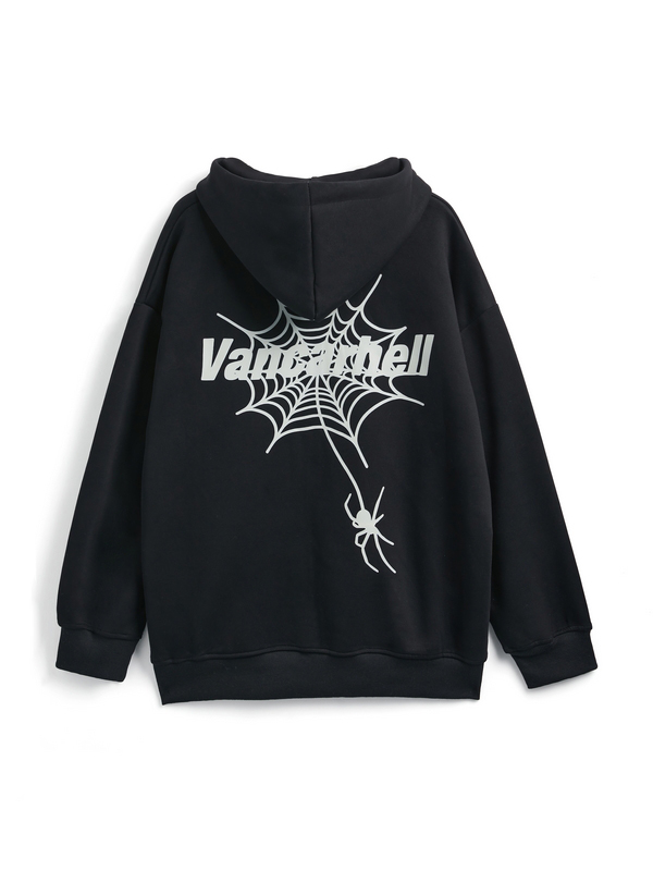 Sudadera con capucha extragrande y cremallera completa con estampado de arañas para hombre