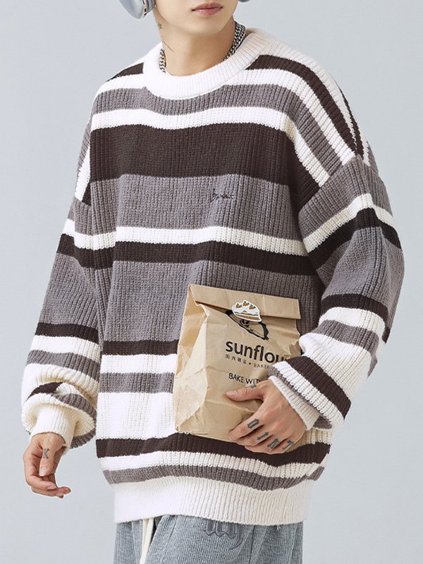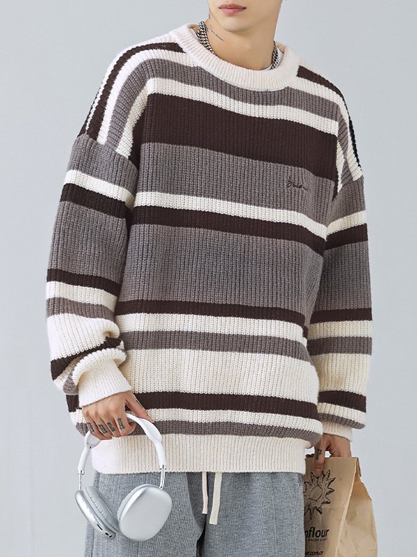 Descripción: Vuelta al cole con estos jerséis de rayas. Confeccionado con tejido de punto de poliéster, tiene un patrón de rayas de bloque de color, diseñado con una delicada letra bordada en la parte delantera del pecho, mangas largas caídas y detalles clásicos de ribetes acanalados.