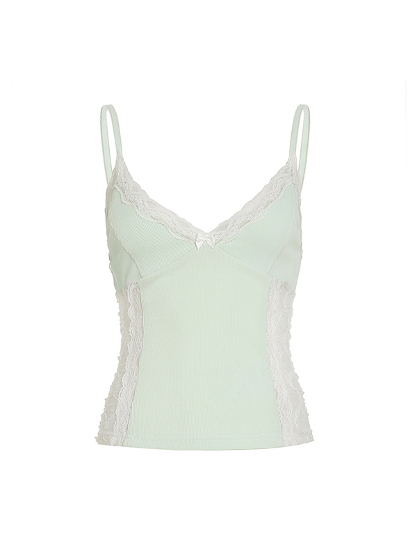 Top de tirantes con lazo y patchwork de encaje